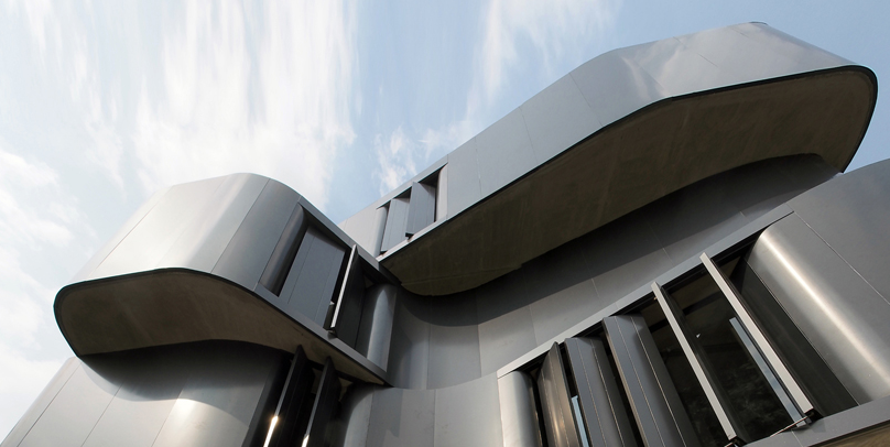 ASWA的辦公室包括4層,總面積為21,528平方英尺(2,000平方米)。一個(gè)開放的停車位占據(jù)了一樓,使得建筑物的其余部分似乎從地面升起。在大型結(jié)構(gòu)柱的支撐下,其余三個(gè)層由黑色彎曲“腰帶”纏繞,這些弧線以不規(guī)則的方式堆疊在彼此之上。