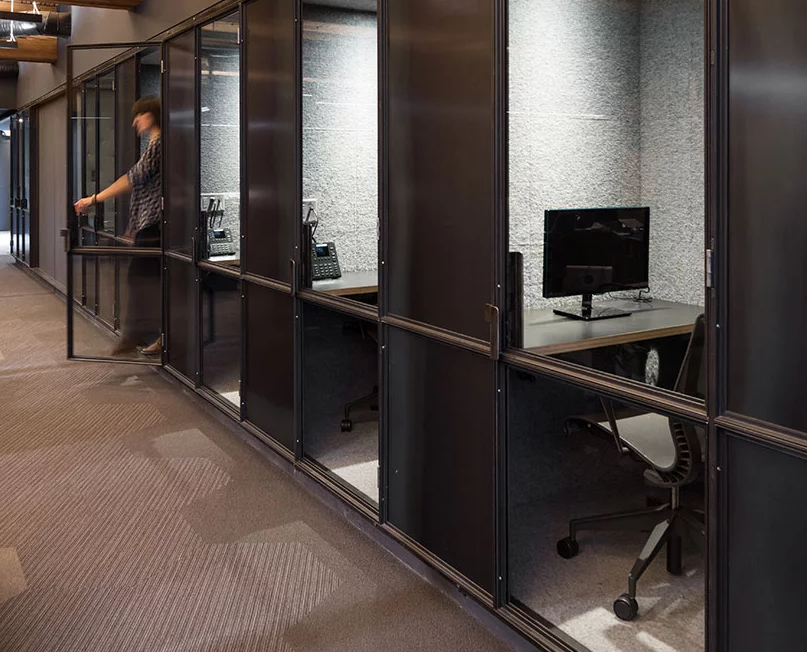 典型的靜態會議室辦公室裝修由移動會議室補充:安裝在車輪上的定制立方體會議室,用于便攜式突破或非正式會議空間。在開放式樓層辦公室裝修計劃中,員工們可以在“skype展位”中為skype會議和私人電話尋找獨處,這種半私有的小矮人來自電話亭的類型。這些獨特的空間允許一種戲劇,是發人深省和創造性的。