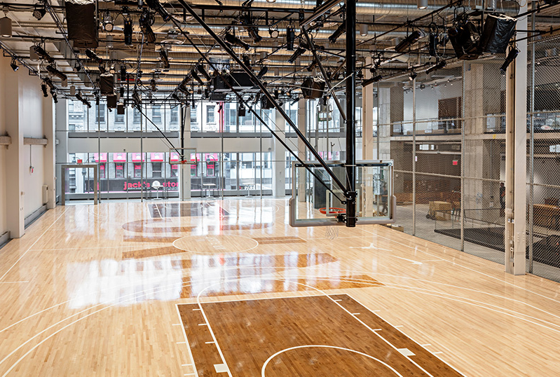 辦公室裝修里4000平方英尺的室內籃球場不僅可以訪問NIKE贊助的運動員,如勒布朗詹姆斯,還可以參加當?shù)氐母咧嘘牶蜕鐓^(qū)合作伙伴。辦公室裝修一個90英尺長的NIKE'swoosh'位于總部的屋頂上,突出了該公司在國際體育界和紐約市社區(qū)的存在。